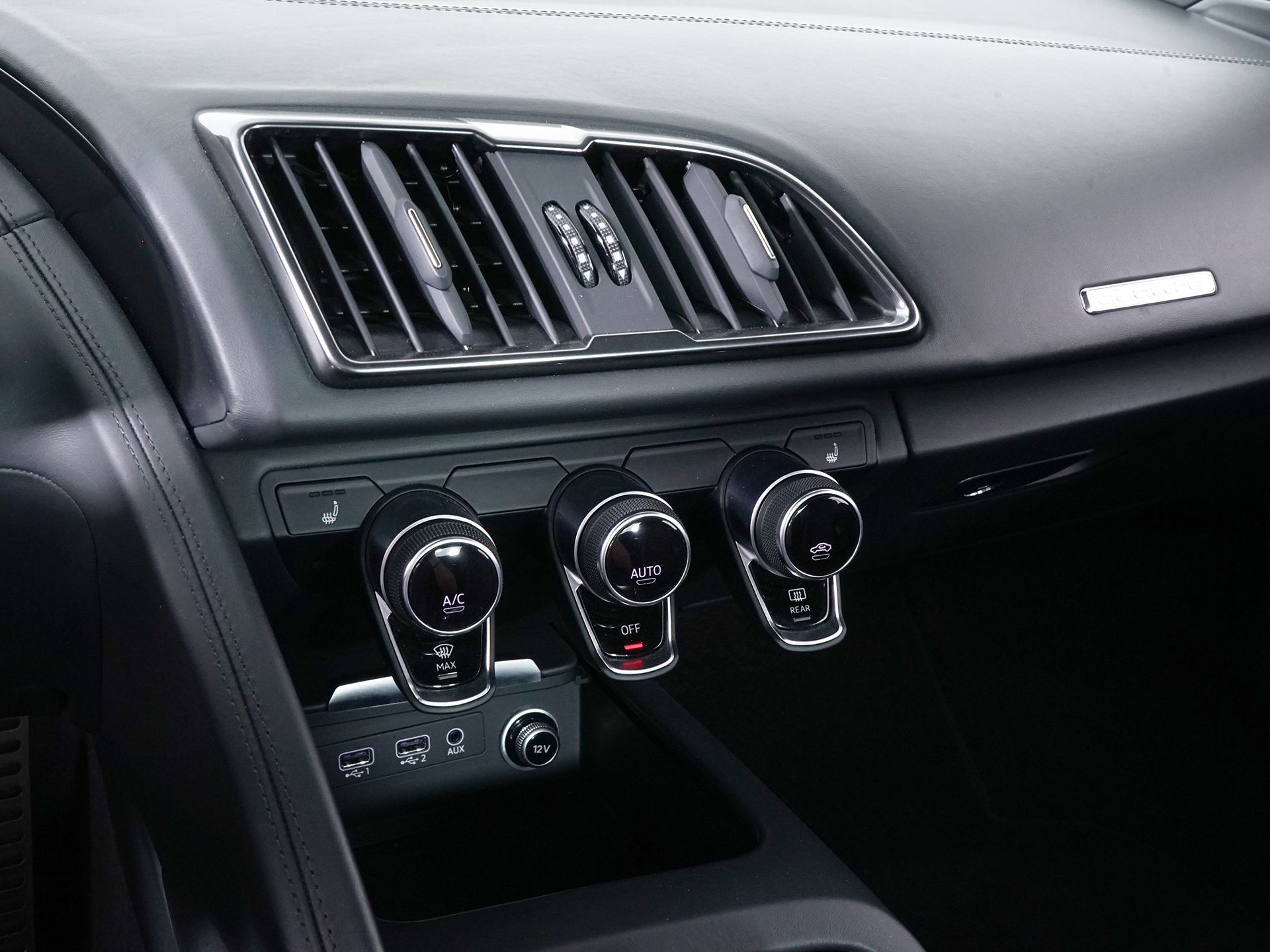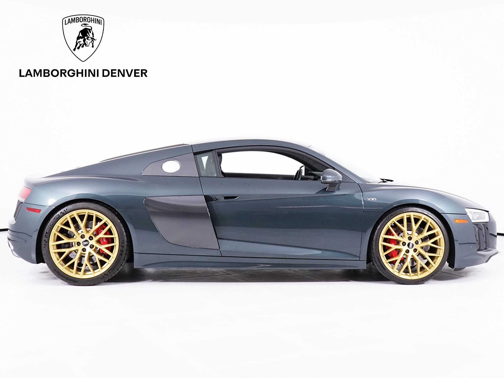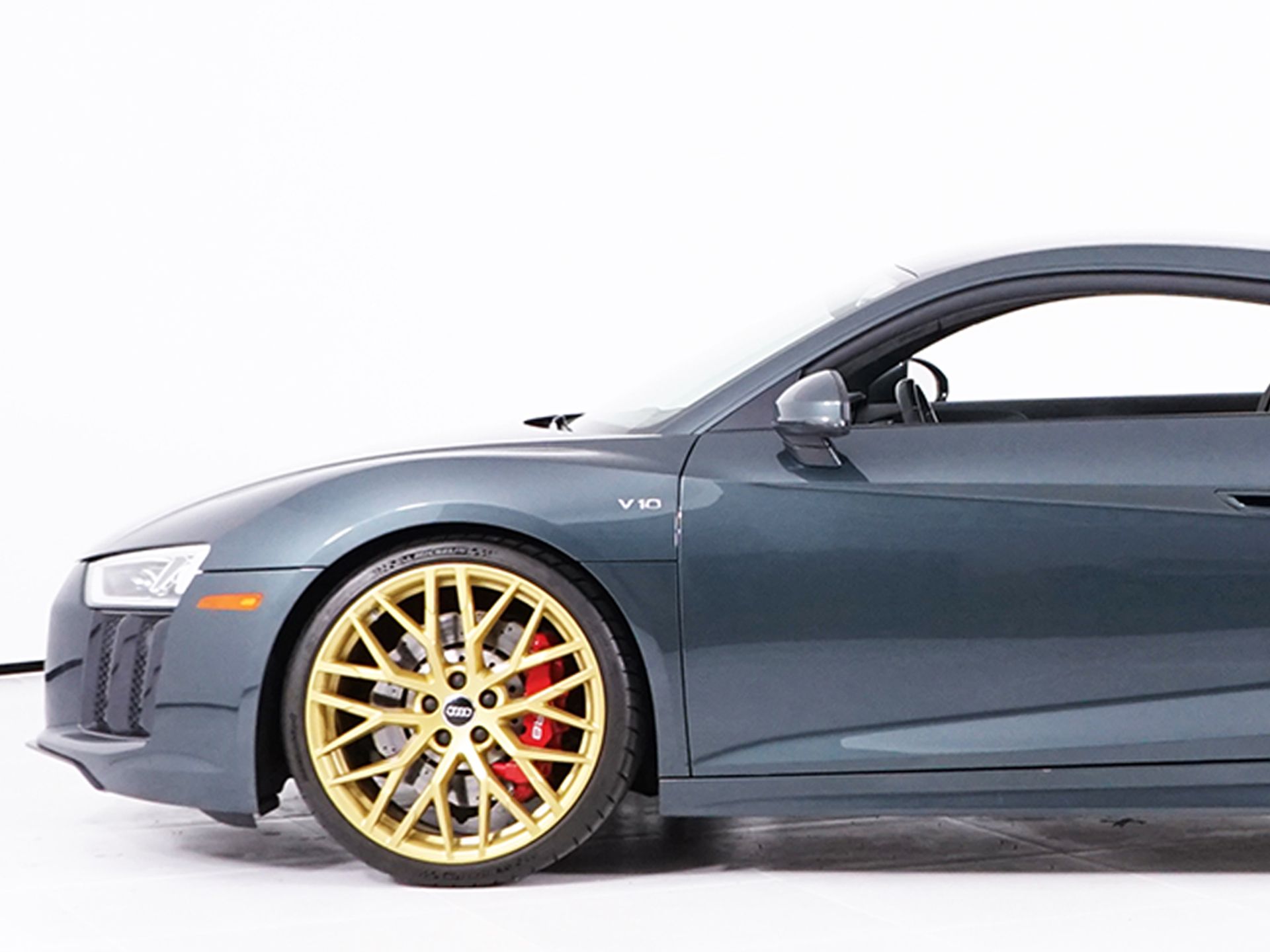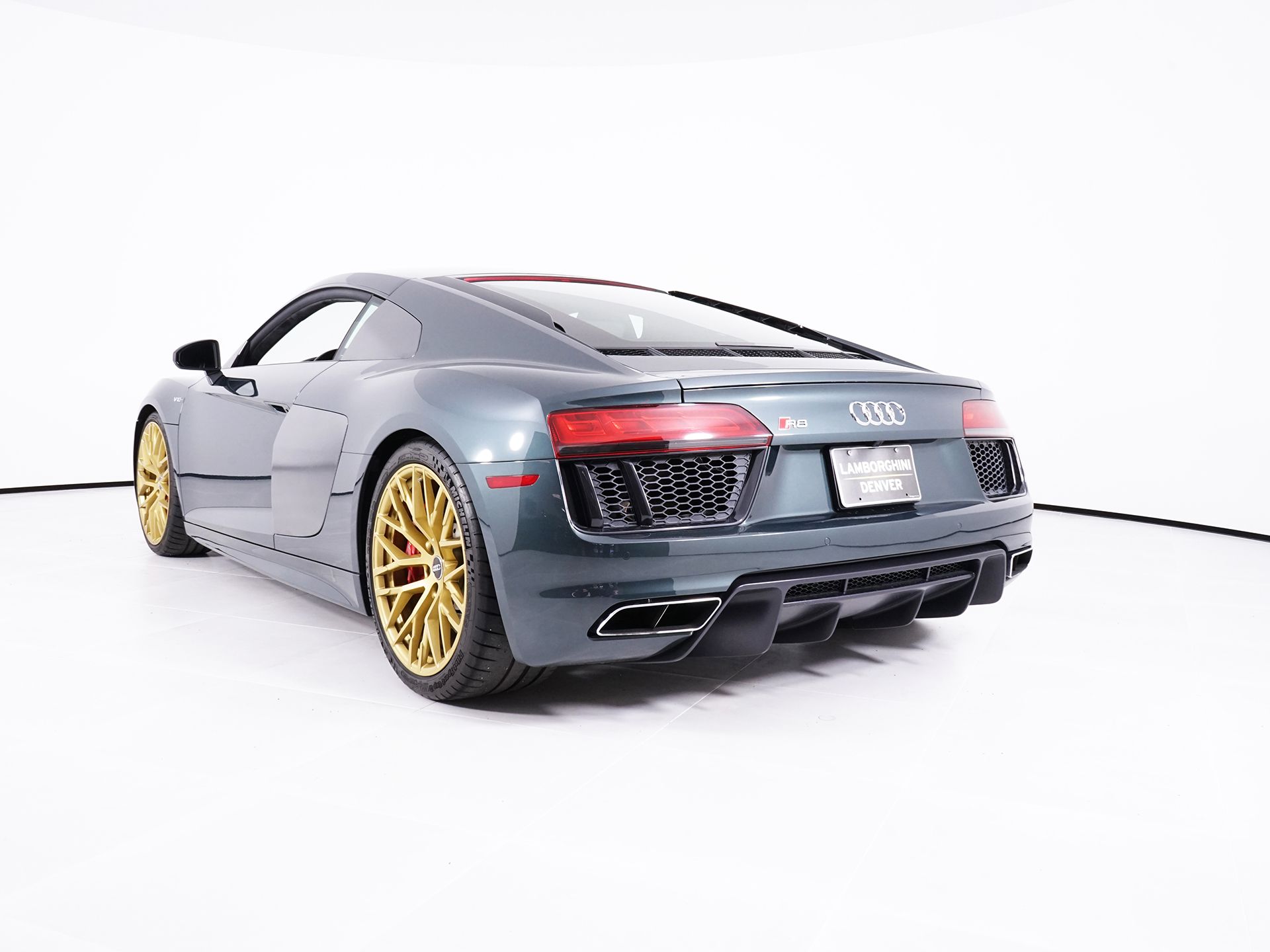 Camouflage Green Metallic/Black Roof 2017 Audi R8 5.2 quattro quattro 7-Speed Automatic S tronic 5.2L V10 FSI DOHC Black / Silver Stitching w/Leather Diamond Stitch Seats, 13 Speakers, 20" Wheel Package, Adaptive suspension, Alcantara Headliner w/Diamond Stitching, Automatic temperature control, Brake assist, Contrast Stitching, Diamond Stitch Leather Package, Electronic Stability Control, Exterior Parking Camera Rear, Full Leather Package, Heated front seats, Heated Front Sport Bucket Seats, Illuminated entry, Leather Diamond Stitch Seats, Navigation System, Remote keyless entry, Wheels: 20" 10-Spoke-Y-design Forged Silver Alloy.Recent Arrival! Odometer is 15295 miles below market average!